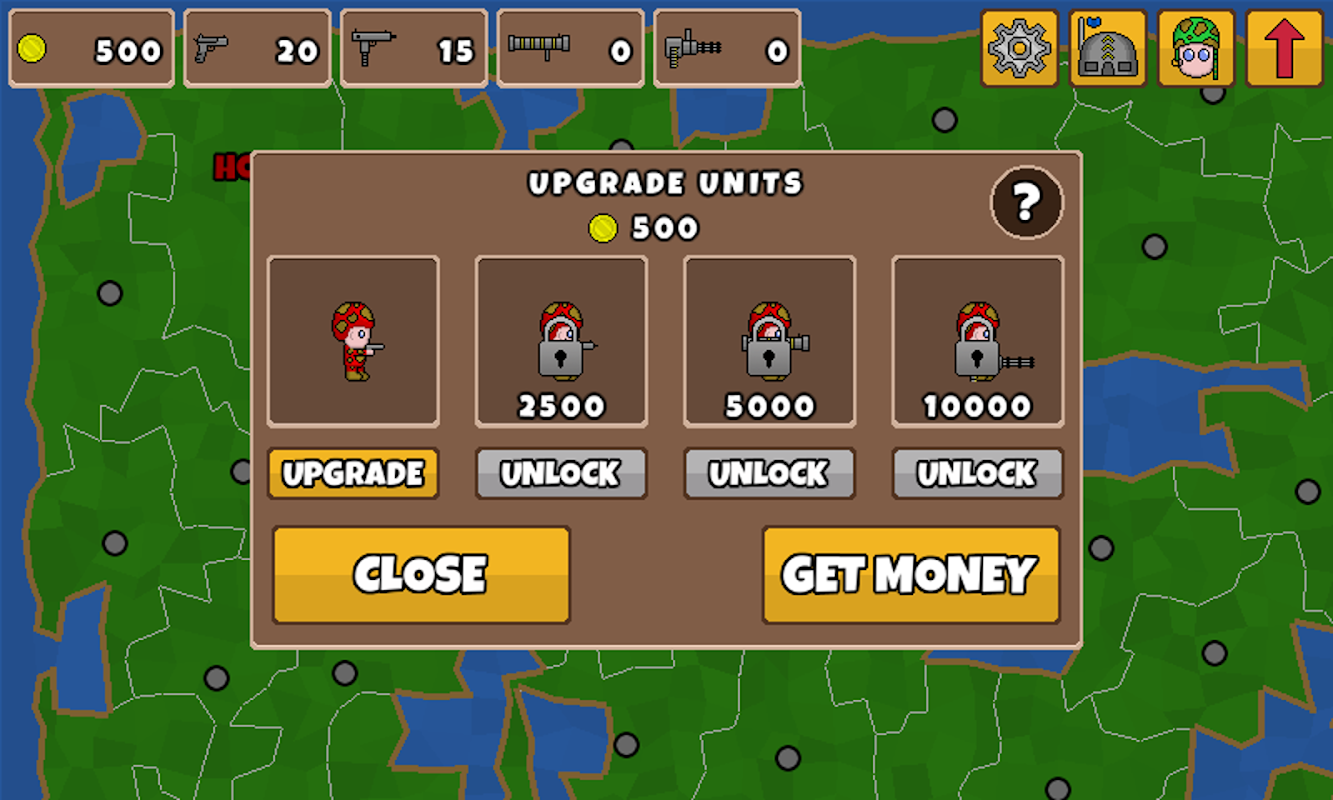 升級你的部隊以提高他們的健康、準確性、射速等。