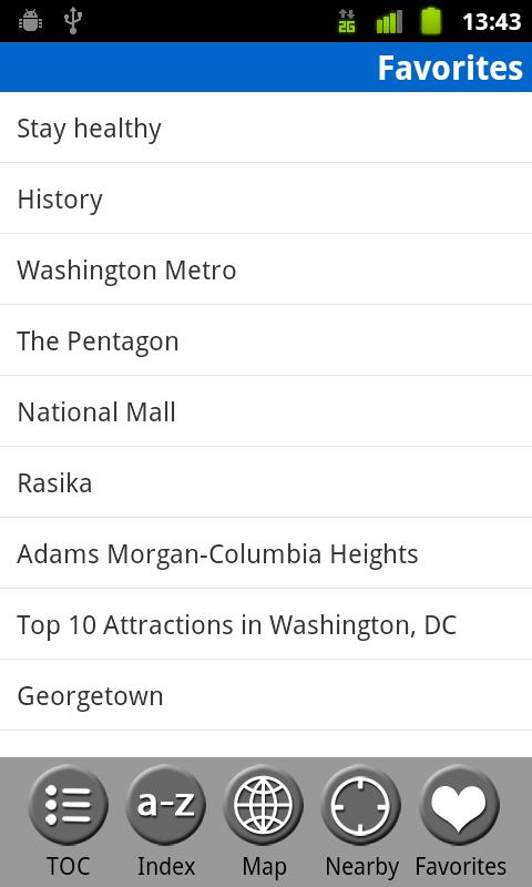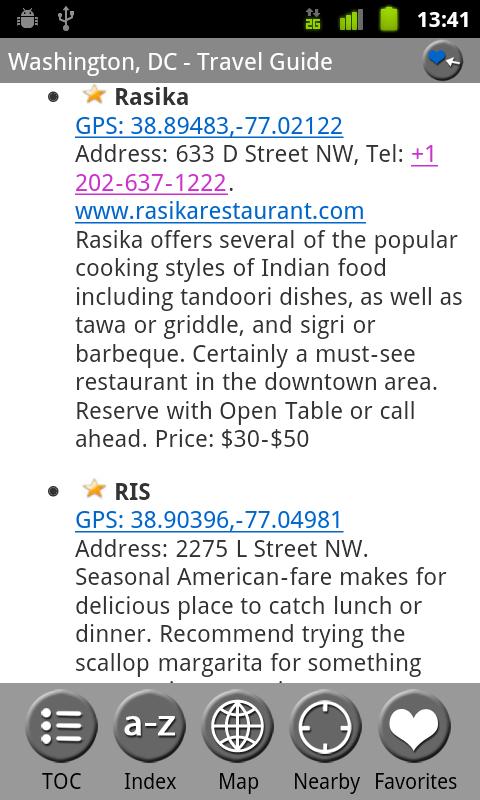 MobileReference Travel Guides provide detailed, practical information about attractions, landmarks, transportation, cultural venues, dining, lodging, history and much more. They are indexed alphabetically and by category, making it easier to access individual articles. Attractions can be viewed on an offline GPS map along with your current location so that you can easily find attractions near you as you explore the city.