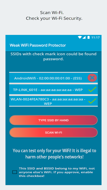 此應用程式並非用於破解或破解任何類型的 Wi-Fi 密碼,如果濫用此應用程序,開發者將不承擔任何責任。