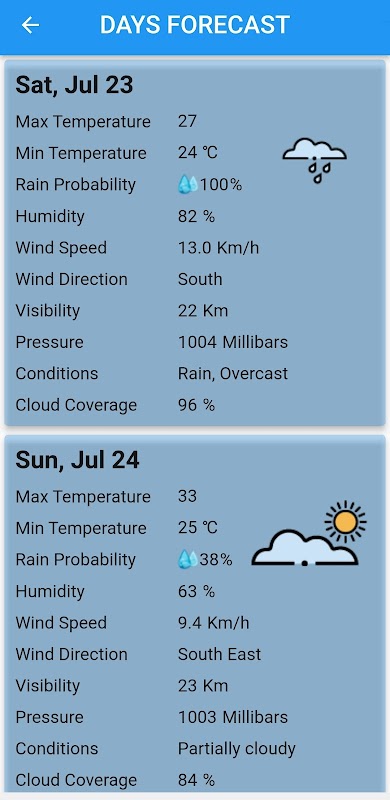 - 每小時或每日預測:應用程序提供 15 天的信息,現在的天氣,每小時免費的每小時天氣,今天的天氣,明天的天氣。