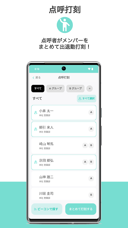 信標可以使用相同應用程式偵測附近的工作人員,並且您可以立即記錄點名。