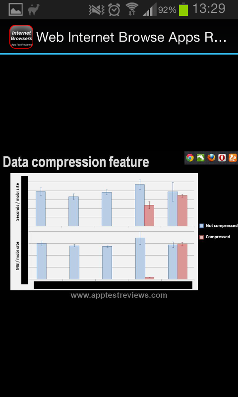 This contents of this app is for informational purposes only. It presents real-world results of data usage and battery consumption of the most popular web or internet browsing apps under standard conditions. Google Chrome, Dolphin Browser, Firefox, Opera and UC Browser are the most downloaded VOiP apps for Android smartphhones and tablets, and as such were reviewed in this comparitive analysis.