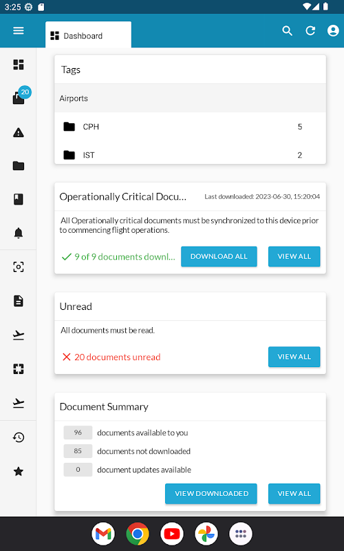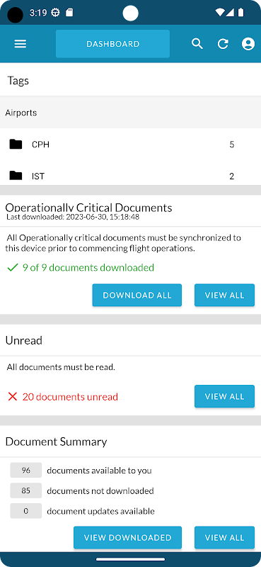 操作關鍵文件:快速訪問重要的航空手冊。此類別中的文檔會自動下載,確保操作關鍵文檔始終可用。
