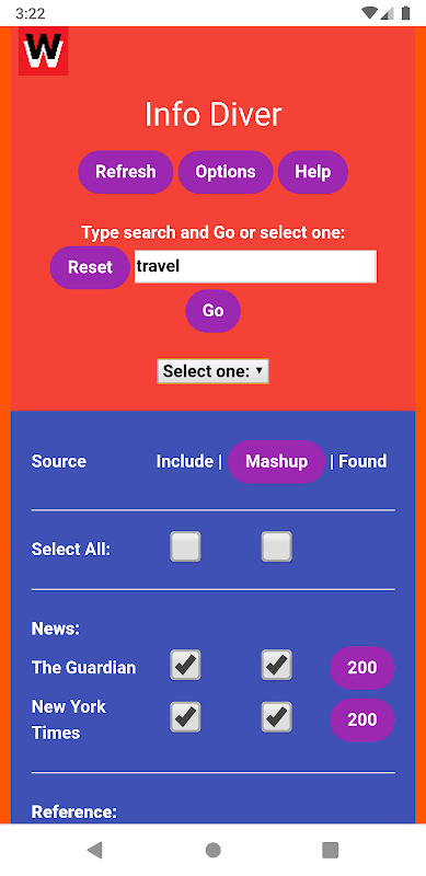 Info Diver is a custom web search app that allows the saving of multiple, focused media searches.