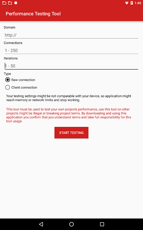 You can test the Website or Api performance just in a minute, just add an accessible domain address, number of connections and iterations.