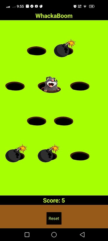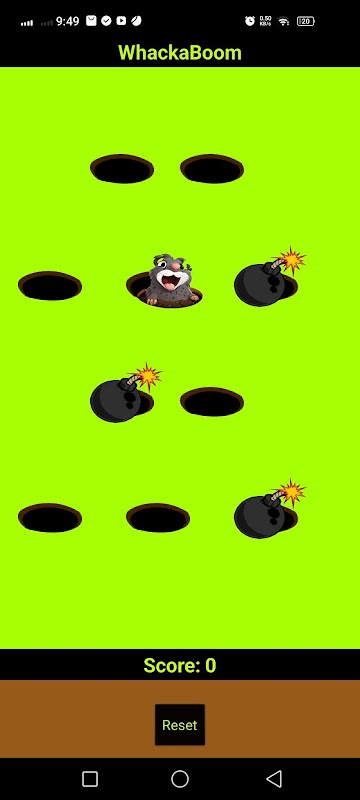 比賽場地由十個洞組成,玩家必須點擊從洞中彈出的可愛鼴鼠,每次成功擊中即可獲得積分。然而,這款遊戲不僅僅是打地鼠。玩家還必須避免從洞中彈出的炸彈。如果玩家擊中炸彈,他們就會輸掉遊戲。