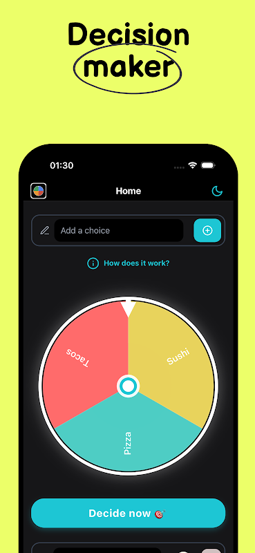 旋轉轉盤,無需過度思考即可獲得隨機結果。