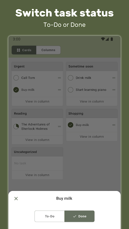 - 您可以在卡片檢視和欄位檢視中查看您的待辦事項清單。