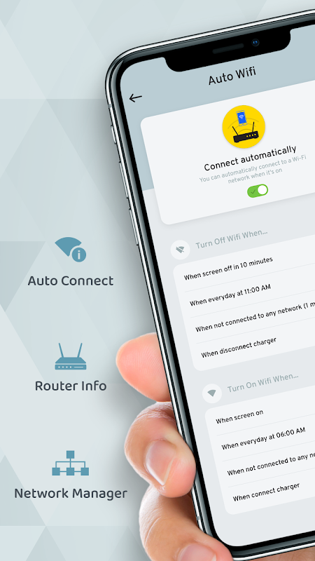 自動 WiFi 開/關(不支持 android 10 及以上設備)