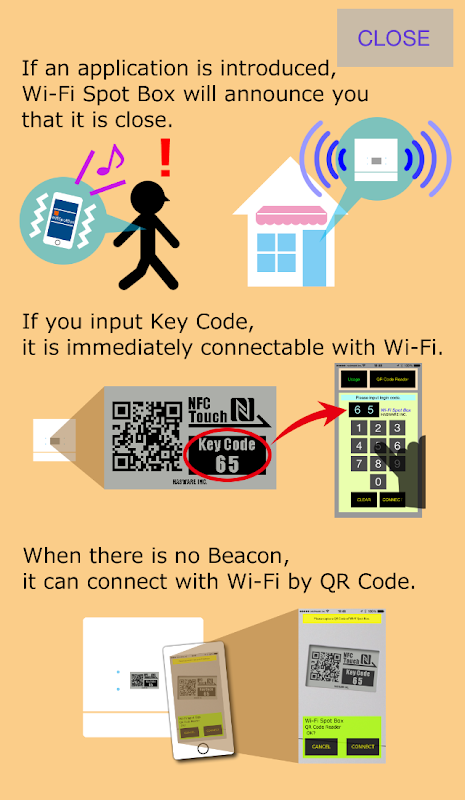 Moreover, this application also has Beacon function, it teaches you that Wi-Fi Spot Box is close.