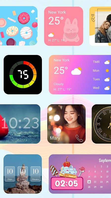一款設計精美且易於使用的Widget工具,提供多種主題配色。它提供了豐富的功能小部件選擇,例如音樂播放器小部件、模擬時鐘小部件、翻轉時鐘小部件、日曆小部件、設備資訊小部件和照片小部件。您可以輕鬆地將它們添加到主螢幕來裝飾您的手機並提高效率。