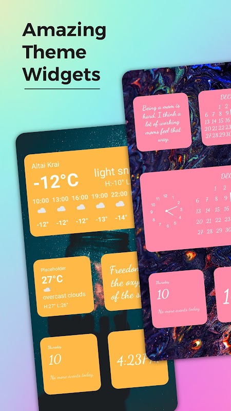 App provide many widget contents & themes, you can use elegant default theme or create new theme with your creation!