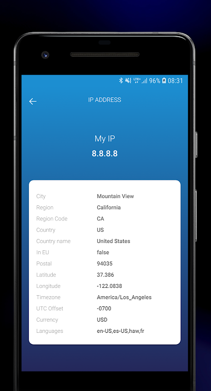 我的 IP 地址是什麼?在我們的應用程序中,您可以獲得有關緯度、經度、時區、國家、城市和互聯網提供商的信息。