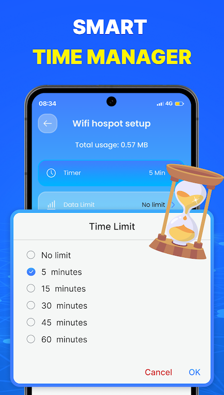 💡 智慧型時間管理器:為您的 Wifi 熱點設定計時器。當計時器用完時,您的個人熱點將自動刪除 Wifi 連線。