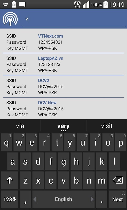 "Wifi Password Recovery " list all wifi passwords saved in your device