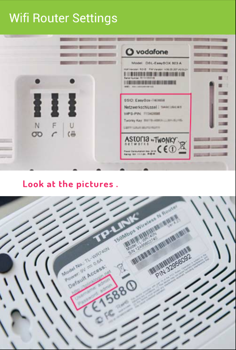 您可以在应用程序中找到很多WiFi路由器的默认密码。