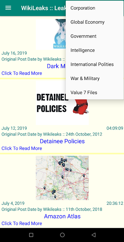 The app features mostly content available on the Wikileaks website, this app is not the official app from Wikileaks and is in no part affiliated with WIKILEAKS.
