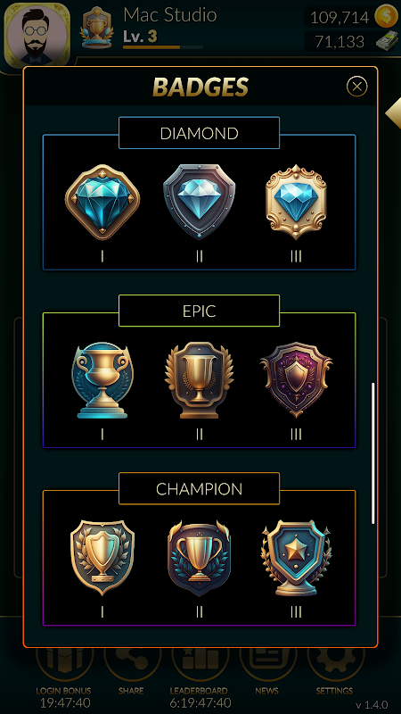 為期一周的聯賽正在進行,頒發徽章。參加聯賽並獲得至少100聯賽積分即可晉級下一級聯賽。獲得徽章以展示您的技能。