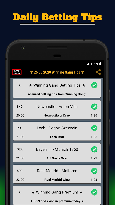 每日確定投注技巧和預測應用程序。足球、網球、NBA籃球。