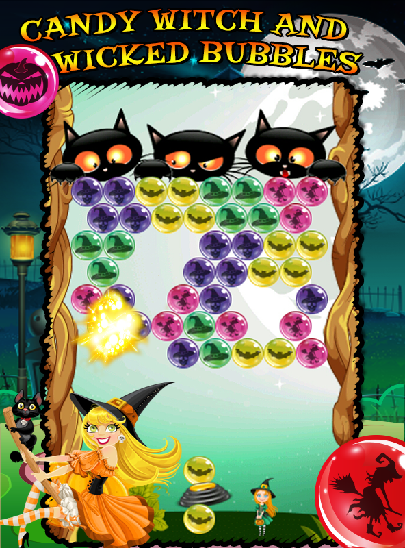 邪惡的泡泡裡有許多魔術道具。通過爆破泡泡來收集小南瓜、尖頂魔術帽子、黑色貓、死人頭以及墓地附近恐怖的鬼魂以及神秘的城堡;簡單一名話,就是收集讓您成為一名巫師所需要的一切東西!您不需要魔仗或者長柄掃帚,只需要爆破邪惡的泡泡!