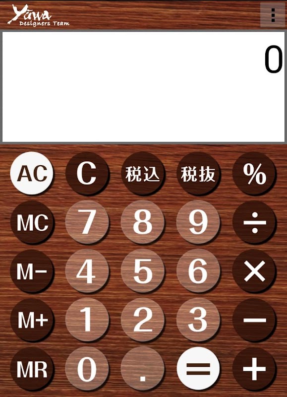 計算機應用服務採用木紋流行的外觀! 您可以使用計算器,方便消費稅的計算除四則運算,百分比計算,記憶功能。