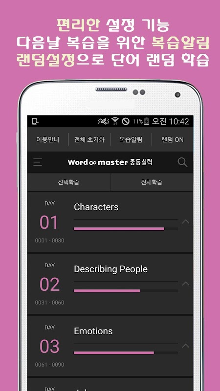 2.詞彙:單詞大師專用的單詞記憶書!根據單詞卡的學習結果,可以對分為“我不知道”和“我知道”的單詞進行深度學習。你可以看到單詞並記住單詞,或者你可以看到單詞並記住單詞。