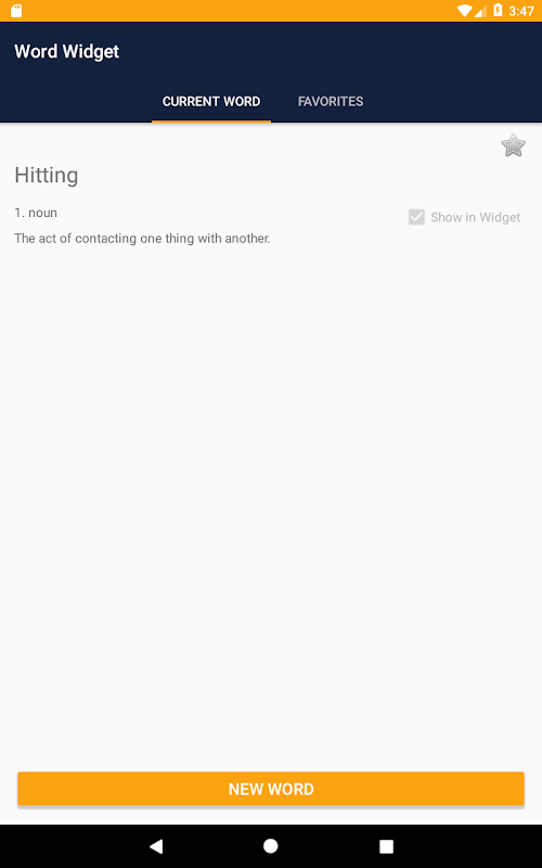 Word將顯示在小部件中,並且僅在您在應用程序中更改時才會更改。每天最多每隔幾分鐘更改一次,或者甚至從不更改(如果您真的很喜歡這個詞):也取決於您。以自己的節奏學習日常詞彙。