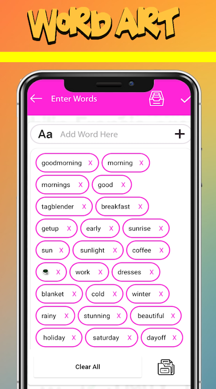 Just enter a some words or can select from default , and the app will shuffle them around in a cute disorderly fashion.