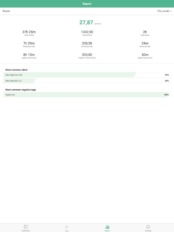 輕鬆跟踪您的工作時間 - 組織,分析和導出它們。適合自由職業者,小時工,員工或任何想要跟踪工作時間的人。