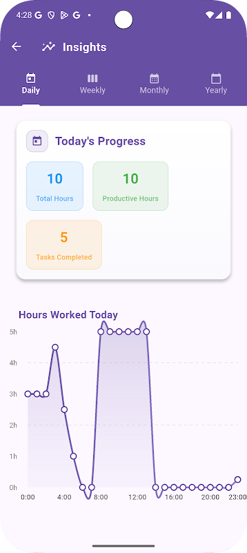 每日工作追蹤應用程式旨在簡化管理工作時間的流程,同時提供有關您的工作效率的寶貴見解。