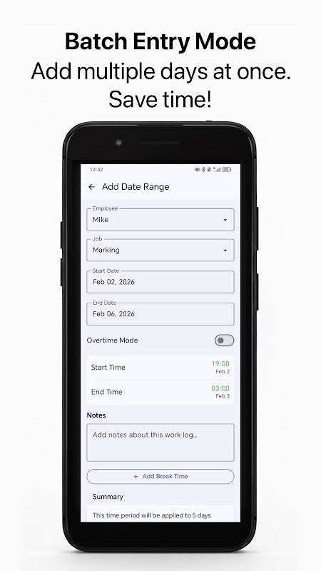 精準追蹤工時、休息時間、加班時間和收入。