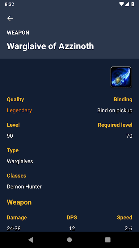 WoWdb is a World of Warcraft database app. It lets you search for items, quests, achievements, quests, and more, view details and stats for them, and shows comments from Wowhead.