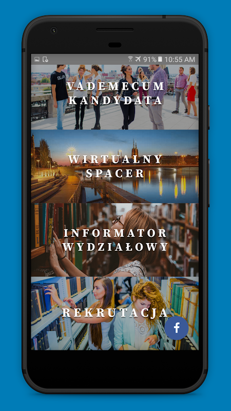 Aplikacja dostarcza kandydatom na studia wszystkich użytecznych informacji dotyczących realizowanych na Wydziale programów studiów, renomowanego Uniwersytetu Wrocławskiego, tętniącego życiem Wrocławia oraz ekscytującego życia studenckiego. Aplikacja zawiera sześć funkcjonalności: