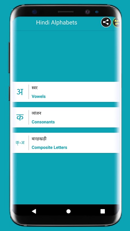 * App contain voice for each Hindi letter.