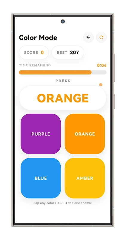 螢幕上會出現一個單字,顏色閃爍,計時器不斷加速。你的大腦會想要點擊最明顯的選項,但你必須遵守遊戲規則,盡可能長時間地堅持下去。一次失誤就會結束遊戲,所以每一次點擊都至關重要。