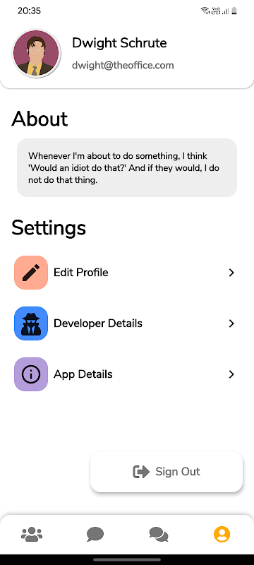 這個應用程序純粹是為了學習目的而製作的。請如此對待。不要嘗試將它用作您的主要聊天應用程序。