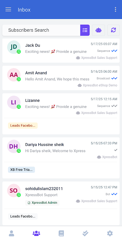 為您的支援代理商和團隊成員提供所需的工具,以便他們直接從行動裝置管理客戶對話、訂單和活動。 XpressBot Crew 將 WhatsApp Business API 的全部功能帶到您的指尖,讓您的團隊能夠更快地做出回應並更聰明地工作。