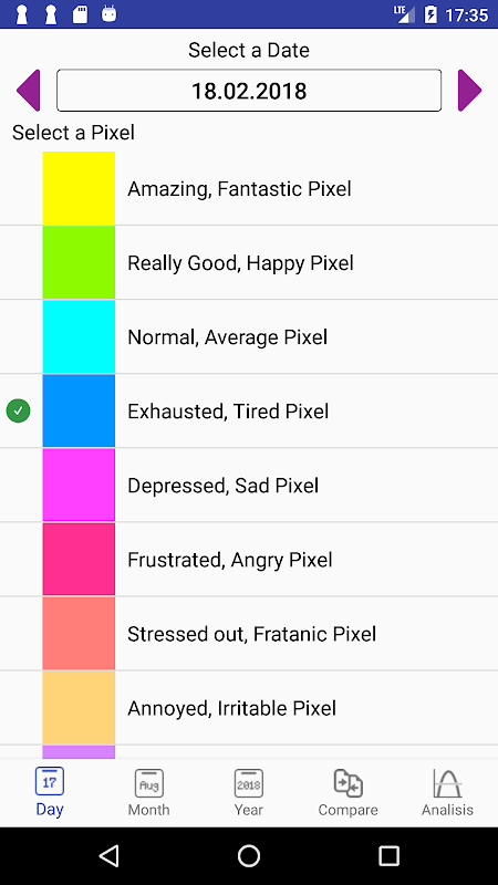 See your overviews in a monthly and yearly base. Compare a time period with another to see if you are changing your moods and finally review, what weekday is the one that is mostly effected by a specific mood.