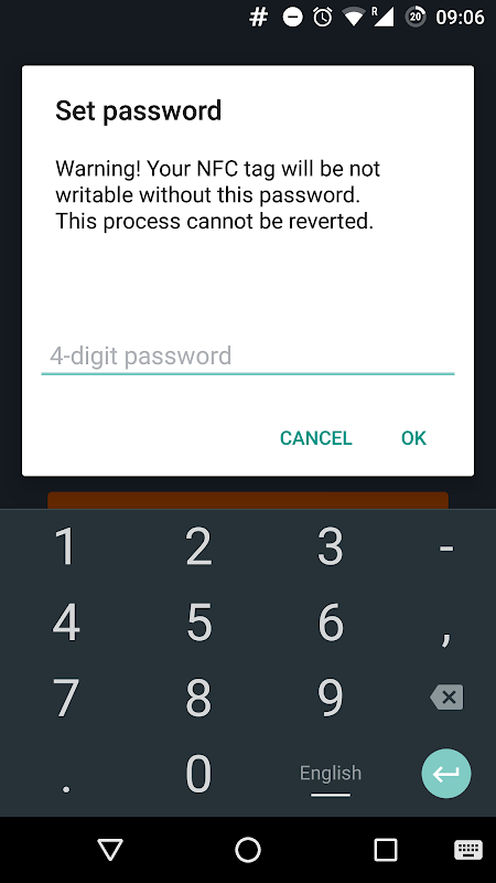 為YSoft SafeQ移動終端方便地建立NFC標籤的應用。從掃描YSoft SafeQ Web界面生成的QR碼,並與選項來設置密碼,保護NFC標籤的意外改寫寫入NFC標籤。