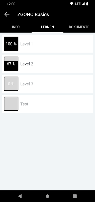 Zusätzlich zum klassischen Lernen wird auch Level-Lernen angeboten. Dafür werden die Lernkarten vom System automatisiert in 3 Levels aufgeteilt und im Zufallsprinzip dem Lernenden zur Aufgabe gestellt. Zwischen den einzelnen Levels ist eine sogenannte „Abkühlphase“ in Zeitform vorgesehen. Dies ist notwendig, um einen hirngerechten und nachhaltigen Wissenserwerb zu erzielen. Ein Abschlusstest macht sichtbar, wo der Lernfortschritt liegt und wo mögliche Defizite liegen und gegebenenfalls nachjustiert werden kann.