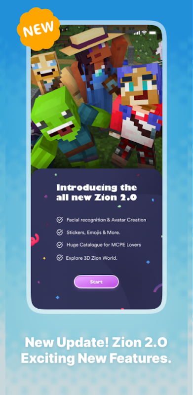 Zion 2.O, your 3D Minecraft Avatar Creator using faical recognition, Sticker Maker, 3D Worlds to Explore, Skin Stealer, Emotes, Tons of assets to Discover and Many More Things...