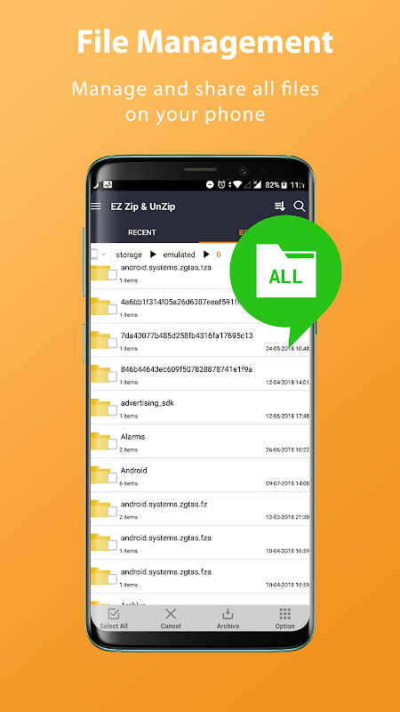 如果用戶只想查看裡面的信息,支持用戶瀏覽文件而無需提取器文件,提取器rar和提取器zip。這是一項必要的功能,允許用戶在瀏覽文件時節省他們的工作量而不需要操作它們。用於android的Rar文件開啟器,解壓縮android文件應用程序免費。