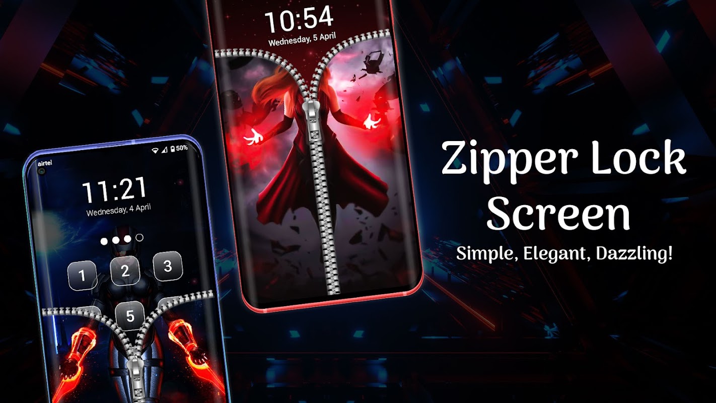 拉鍊鎖屏提供了各種有用和有趣的英雄主題,用於裝飾您的手機鎖屏和維護隱私鎖屏。拉鍊屏幕鎖有一個密碼選項,您可以在解鎖設備時使用。