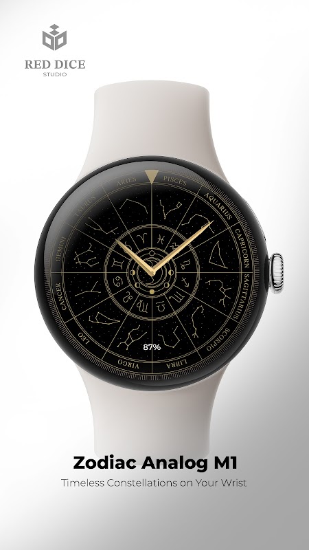 探索 Zodiac Analog M1 的迷人之美,這款高端錶盤將雋永的十二星座藝術與現代功能完美融合。這款錶盤擁有四種獨特背景——兩種奢華的金色和兩種舒緩的藍色——是您 Wear OS 智慧手錶的驚人配件。 Zodiac Analog M1 的設計兼具優雅與實用,以星空般的觸感提升您的腕間格調。