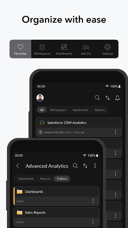 使用此應用程序,您可以查看您創建的Zoho Analytics帳戶中擁有的所有數據,報告和儀表板。您可以與報表進行交互,收藏喜歡的或經常查看的報表,並通過細粒度的訪問控制與同事,客戶和朋友共享報表,以及執行更多操作。