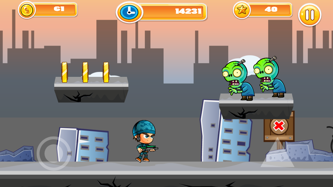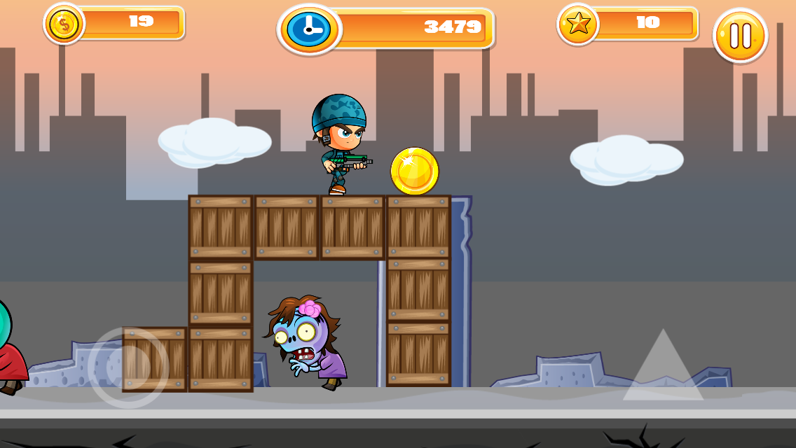 這是一個簡單的遊戲,你點擊屏幕跳躍和射擊殺殭屍。