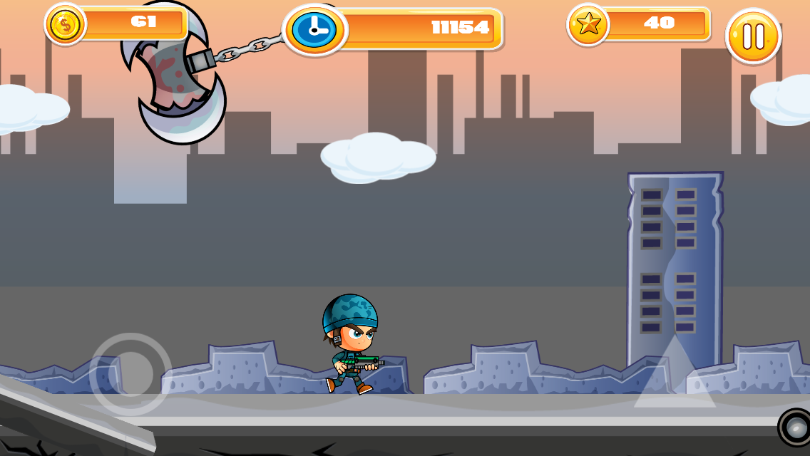 For playing this game, you can use touch in screen to jump and shoot.