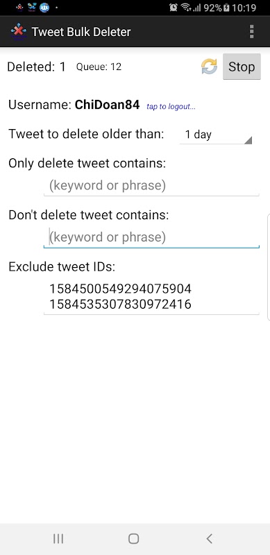 - Exclude tweet ids, these tweets won't be deleted!