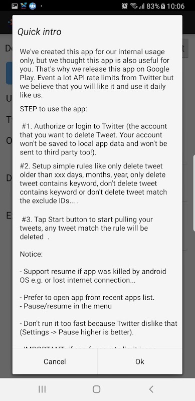 Even Twitter apply a lot rate limits, we can't delete it very fast, but we hope you still like Tweet Bulk Deleter app because it works and save you a huge time for manually tweet deletion.