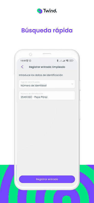 Access information from external staff even without an internet connection. Twind periodically obtains information from our servers and saves it in its memory so that you can verify it offline.